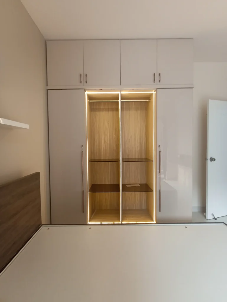 We had a small tv wall, flushed the door and made th tv wall.